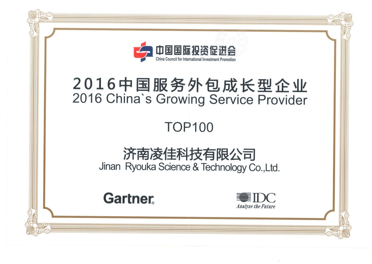 济南凌佳科技有限公司获得“2016年中国服务外包成长型企业”荣誉,这是继2015年济南凌佳获得“中国服务外包技术创新型企业”后的又一殊荣。
